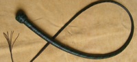 Black 16plait Bullwhip. Yellow highlight in the knots. |